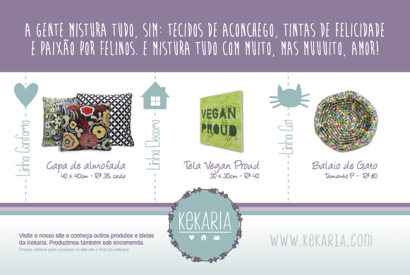 A Kekaria é uma loja especializada em crafts para casa e para gatos! Passamos por diversas opções antes da Keka escolher esse como o logo que tocou o coração dela! 😀